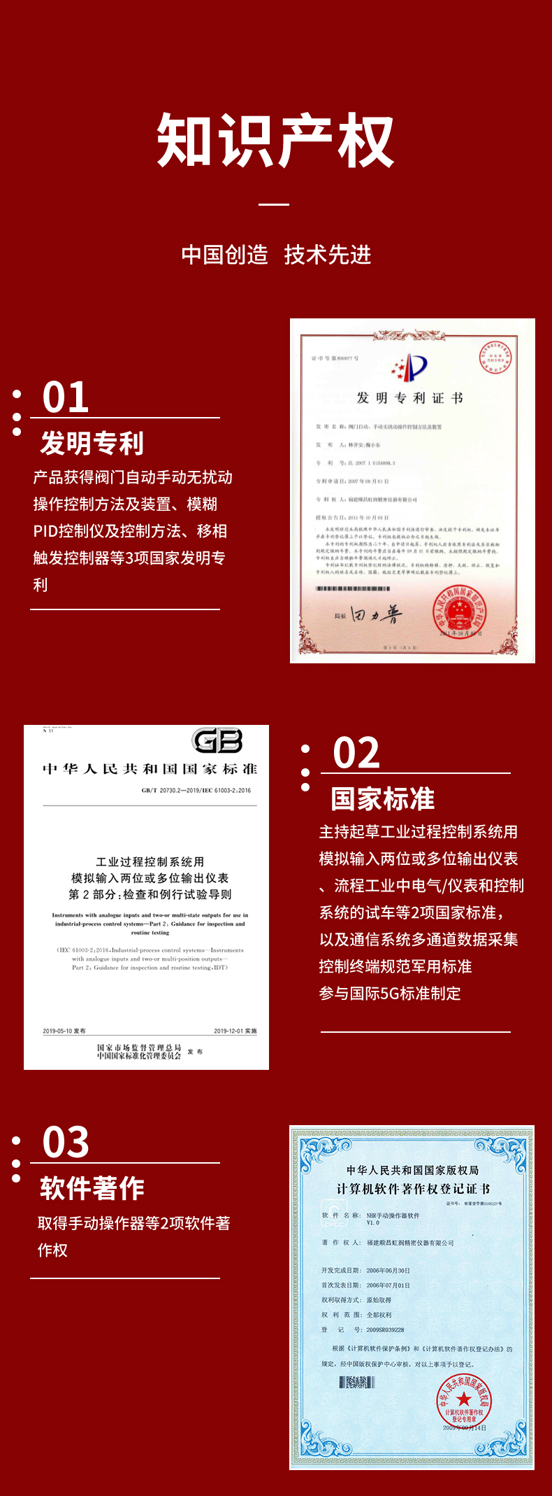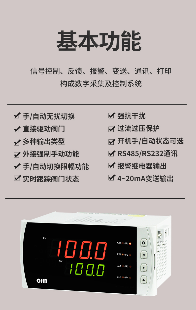 虹潤公司是專業(yè)生產(chǎn)智能手操器的國家專精特新“小巨人”企業(yè),生產(chǎn)的手動(dòng)操作器,具有手自動(dòng)無擾切換,直接調(diào)節(jié)閥門,多種輸出類型,外接強(qiáng)制手動(dòng)功能,高抗干擾等特點(diǎn)。產(chǎn)品獲得閥門自動(dòng)手動(dòng)無擾動(dòng)操作控制方法及裝置、模糊PID控制儀及控制方法、移相觸發(fā)控制器等3項(xiàng)國家標(biāo)準(zhǔn),主持起草工業(yè)過程控制系統(tǒng)用模擬輸入兩位或多位輸出儀表、流程工業(yè)中電氣/儀表和控制系統(tǒng)的試車等2項(xiàng)國家標(biāo)準(zhǔn),以及通信系統(tǒng)多通道數(shù)據(jù)采集控制終端規(guī)范軍用標(biāo)準(zhǔn),參與國際5G標(biāo)準(zhǔn)制定,取得手動(dòng)操作器等3項(xiàng)相關(guān)軟件著作權(quán)。產(chǎn)品廣泛應(yīng)用于電力、石化、冶金、化工、造紙、食品、輕工、制藥、熱處理、水處理、機(jī)械配套等各種工業(yè)現(xiàn)場(chǎng)。