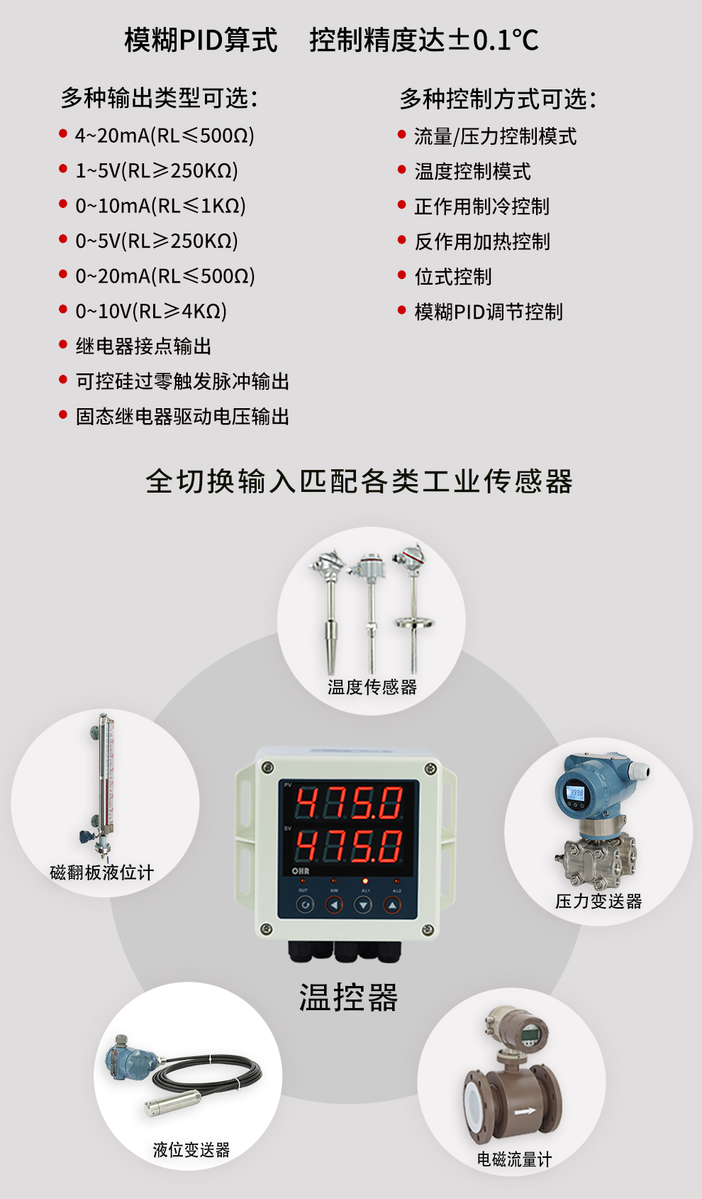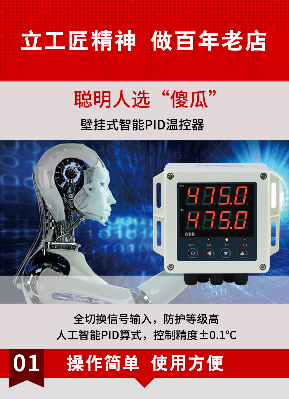 虹潤公司是專業(yè)生產(chǎn)溫控器的國家專精特新“小巨人”企業(yè)。生產(chǎn)的壁掛式PID溫控器,具有全切換信號輸入,真正人工智能算式,控制精度達(dá)士0.1°C,防護(hù)等級高,RS485通訊輸出DN等特點(diǎn)。產(chǎn)品獲得模糊PID控制儀及控制方法、人工智能調(diào)節(jié)器、智能化控制器、移相觸發(fā)控制器、閥門自動手動無擾動操作控制方法及裝置等5項國家發(fā)明專利,主持起草主持起草工業(yè)過程控制系統(tǒng)用模擬輸入兩位或多位輸出儀表、物聯(lián)網(wǎng)智能溫度儀表通用技術(shù)條件、工業(yè)過程測量和控制系統(tǒng)用智能調(diào)節(jié)器等3項國家標(biāo)準(zhǔn),以及通信系統(tǒng)多通道數(shù)據(jù)采集控制終端規(guī)范軍用標(biāo)準(zhǔn)。參與國際5G標(biāo)準(zhǔn)制定,取得傻瓜式PID調(diào)節(jié)儀等3項相關(guān)軟件著作權(quán)。產(chǎn)品廣泛應(yīng)用于電力、石化,冶金、制藥、食品等幾乎所有工業(yè)現(xiàn)場,實(shí)現(xiàn)精準(zhǔn)控溫,保障生產(chǎn)安全與質(zhì)量。