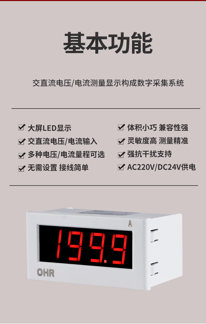 虹潤公司是專業(yè)生產(chǎn)數(shù)字電壓表的國家專精特新“小巨人”企業(yè)。生產(chǎn)的電壓/電流表,具有大屏LED顯示,交直流電壓/電流輸入,免設(shè)置易接線,性價(jià)比高等特點(diǎn)。產(chǎn)品獲得一種交流信號(hào)變送器、交直流信號(hào)轉(zhuǎn)換電路、基于DCS技術(shù)的盤裝式三相電量表等3項(xiàng)國家發(fā)明專利,主持起草現(xiàn)場設(shè)備集成等5項(xiàng)智能制造國家標(biāo)準(zhǔn),物聯(lián)網(wǎng)電流變送器規(guī)范、物聯(lián)網(wǎng)總體技術(shù)智能傳感器特性與分類等2項(xiàng)國家標(biāo)準(zhǔn),以及直流漏電流傳感器規(guī)范、通信系統(tǒng)多通道數(shù)據(jù)采集控制終端規(guī)范等2項(xiàng)軍用標(biāo)準(zhǔn),參與國際5G標(biāo)準(zhǔn)制定。產(chǎn)品廣泛應(yīng)用于電力系統(tǒng)、工業(yè)制造、自動(dòng)化設(shè)備、計(jì)量檢測等各種工業(yè)領(lǐng)域。