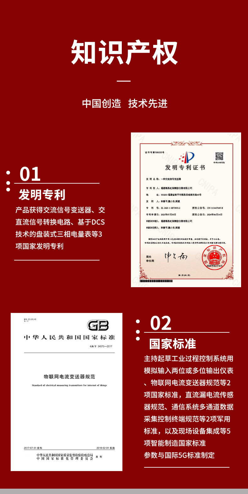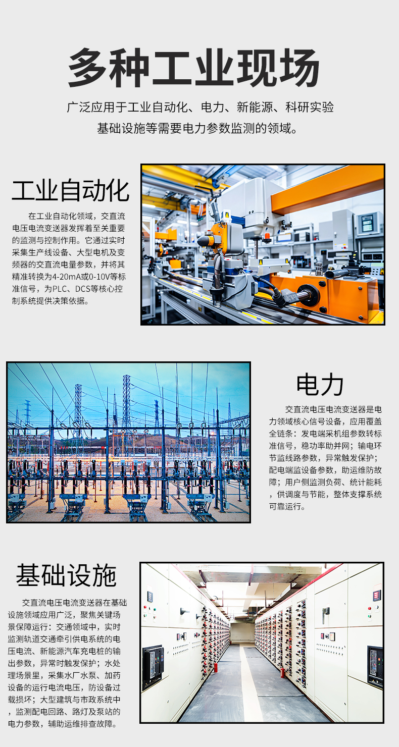 虹潤(rùn)公司是專業(yè)生產(chǎn)電流傳感器的國(guó)家專精特新“小巨人”企業(yè)。生產(chǎn)的交流電壓/電流變送器,具有交流電壓/電流輸入、高精準(zhǔn)測(cè)量、響應(yīng)速度快、高抗干擾、全隔離設(shè)計(jì)等特點(diǎn)。產(chǎn)品獲得一種交流信號(hào)變送器、交直流信號(hào)轉(zhuǎn)換電路、基于DCS技術(shù)的盤(pán)裝式三相電量表等3項(xiàng)國(guó)家發(fā)明專利,主持起草工業(yè)過(guò)程控制系統(tǒng)用模擬輸入兩位或多位輸出儀表國(guó)家標(biāo)準(zhǔn),直流漏電流傳感器規(guī)范、通信系統(tǒng)多通道數(shù)據(jù)采集控制終端規(guī)范等2項(xiàng)軍用標(biāo)準(zhǔn),以及現(xiàn)場(chǎng)設(shè)備集成等5項(xiàng)智能制造國(guó)家標(biāo)準(zhǔn),參與國(guó)際5G標(biāo)準(zhǔn)制定。產(chǎn)品廣泛應(yīng)用于工業(yè)自動(dòng)化、電力、新能源、科研實(shí)驗(yàn)基礎(chǔ)設(shè)施等需要電力參數(shù)監(jiān)測(cè)的領(lǐng)域。
