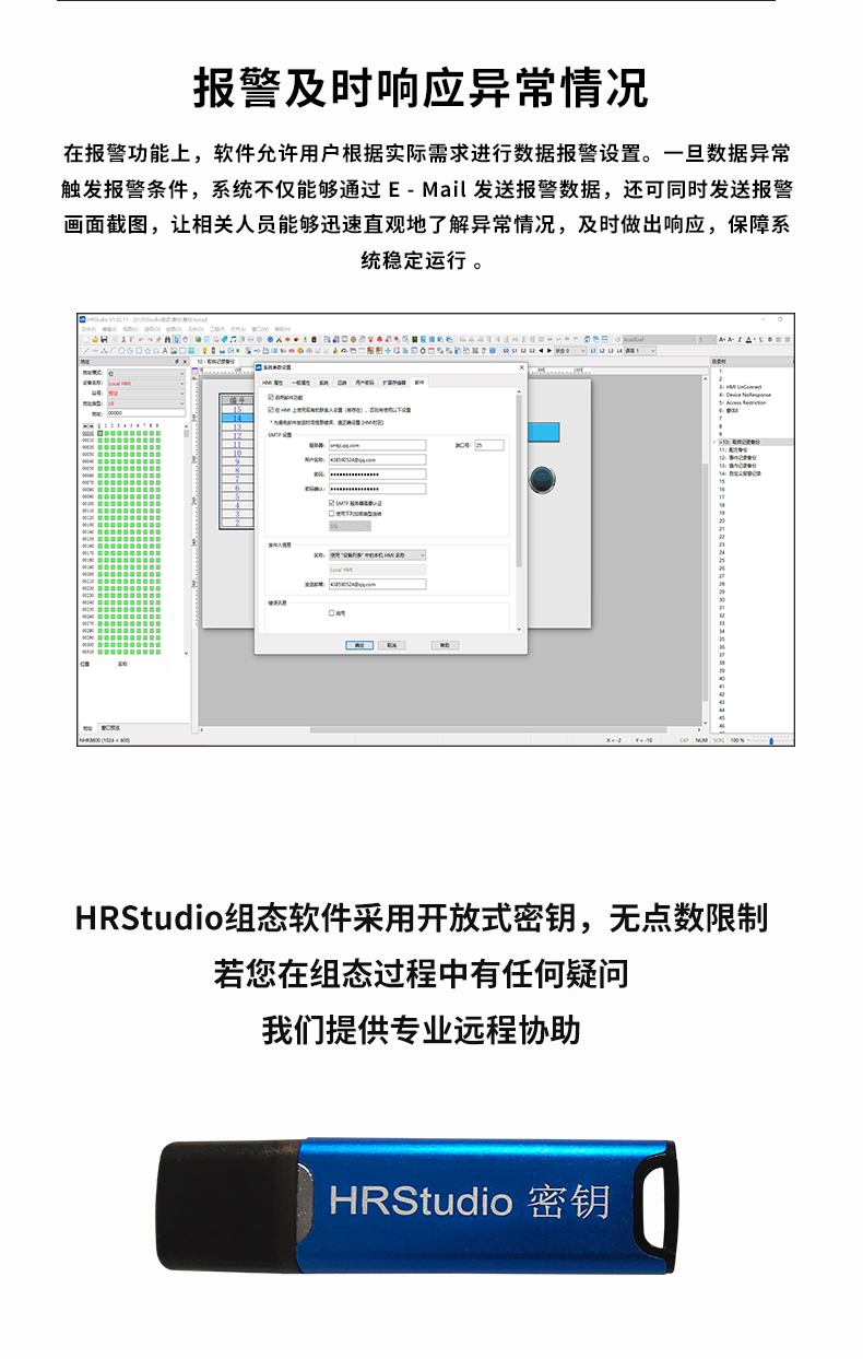 虹潤?HRStudio?組態(tài)軟件采用開放式密鑰,無點數(shù)限制;凡購買虹潤帶有 RS485/232、以太網(wǎng)通訊功能的儀表,單筆訂單滿 3800 元,即免費贈送HRStudio 組態(tài)軟件及對應(yīng)密鑰;若您在組態(tài)過程中有任何疑問,我們提供專業(yè)遠(yuǎn)程協(xié)助。